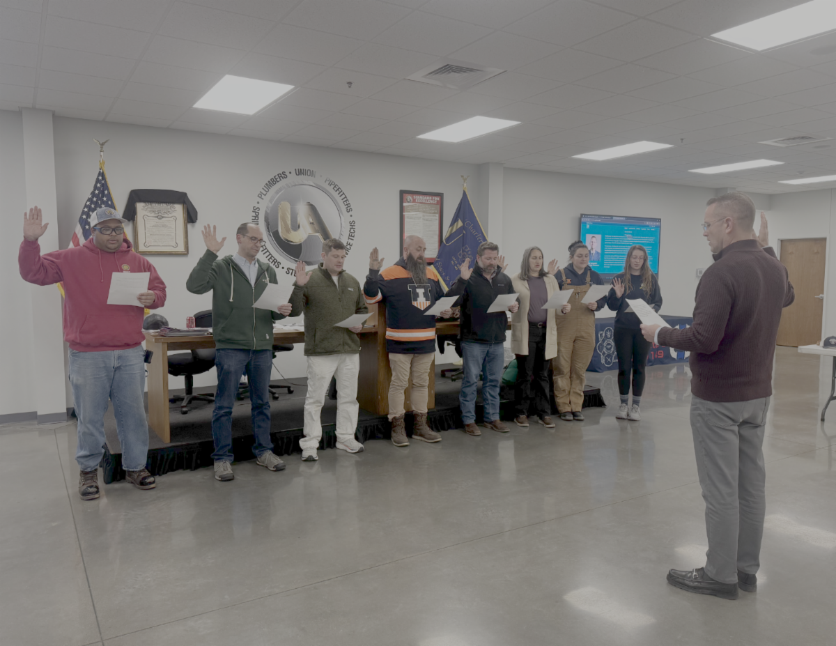 Champaign, IL – Last night, Champaign resident and Illinois AFL-CIO Secretary-Treasurer Pat Devaney swore in the East Central Illinois AFL-CIO’s nine new officers, who affirmed their commitment to advocating for union members and their families. The newly inaugurated leadership emphasized building strong partnerships with community organizations and engaging in political campaigns aimed at improving the lives of working people.